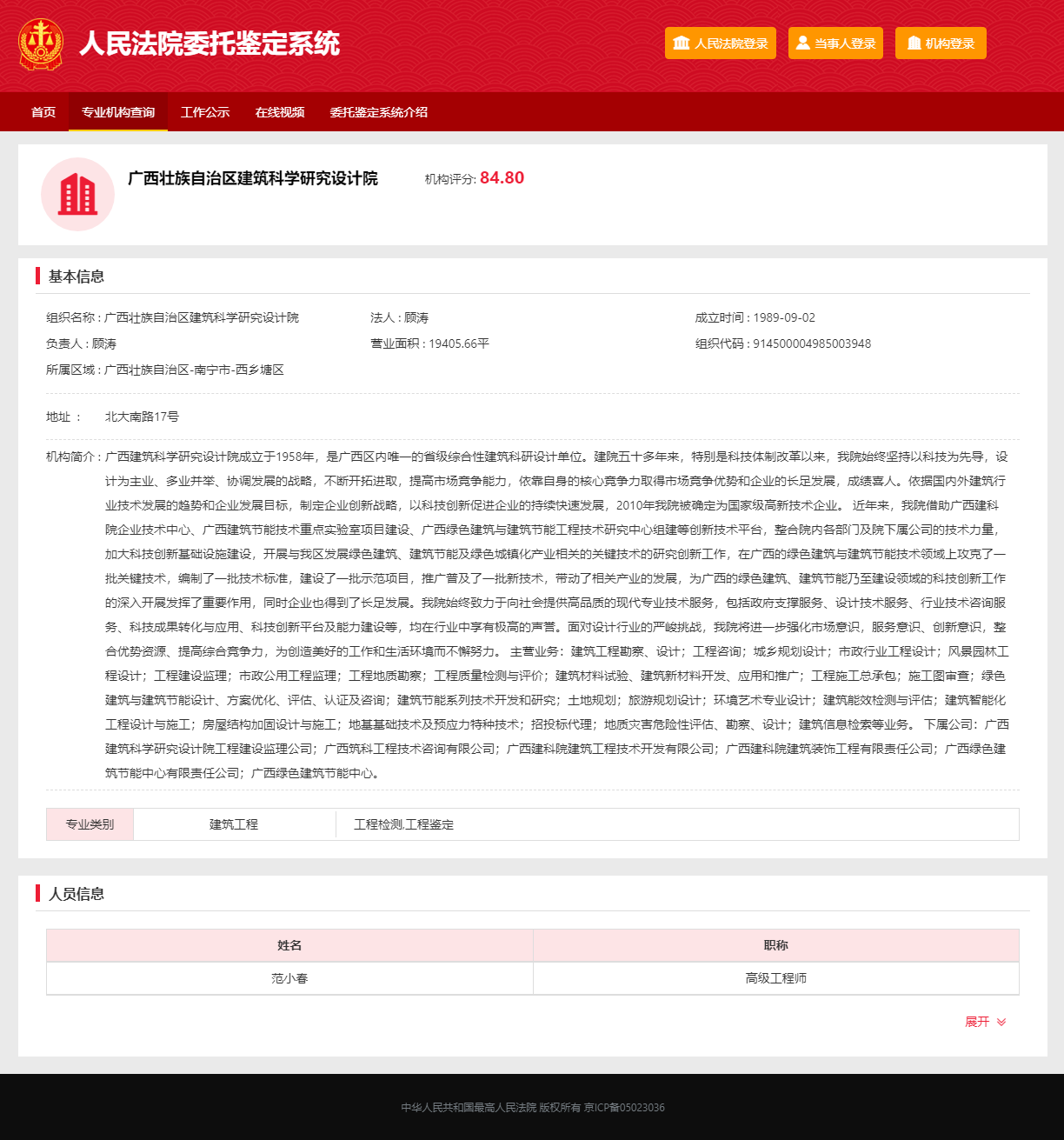 2020年1月,廣西壯族自治區(qū)建筑科學(xué)研究設(shè)計(jì)院(以下簡稱“我院”)順利通過“人民法院委托鑒定系統(tǒng)”備案資格,獲準(zhǔn)作為第三方鑒定機(jī)構(gòu)承擔(dān)司法鑒定工作,專業(yè)類別主要為工程鑒定及工程檢測。我院作為區(qū)內(nèi)唯一的建筑類科研院所,技術(shù)力量雄厚,并有強(qiáng)大的技術(shù)支撐,始終秉承“規(guī)范、公正、科學(xué)、權(quán)威”的理念為指導(dǎo)思想,以高度專業(yè)的技術(shù)水平、良好的社會公信力,勇?lián)鐣?zé)任展現(xiàn)國企形象,接受廣大群眾、單位、企業(yè)以及各級行政主管部門的委托,承擔(dān)多項(xiàng)司法委托鑒定和司法鑒定輔助人的工作。目前已完成多項(xiàng)房屋修復(fù)方案、房屋鑒定、工程質(zhì)量鑒定等工作,我院的技術(shù)成果和服務(wù)質(zhì)量均得到了社會的廣泛好評和高度認(rèn)可。