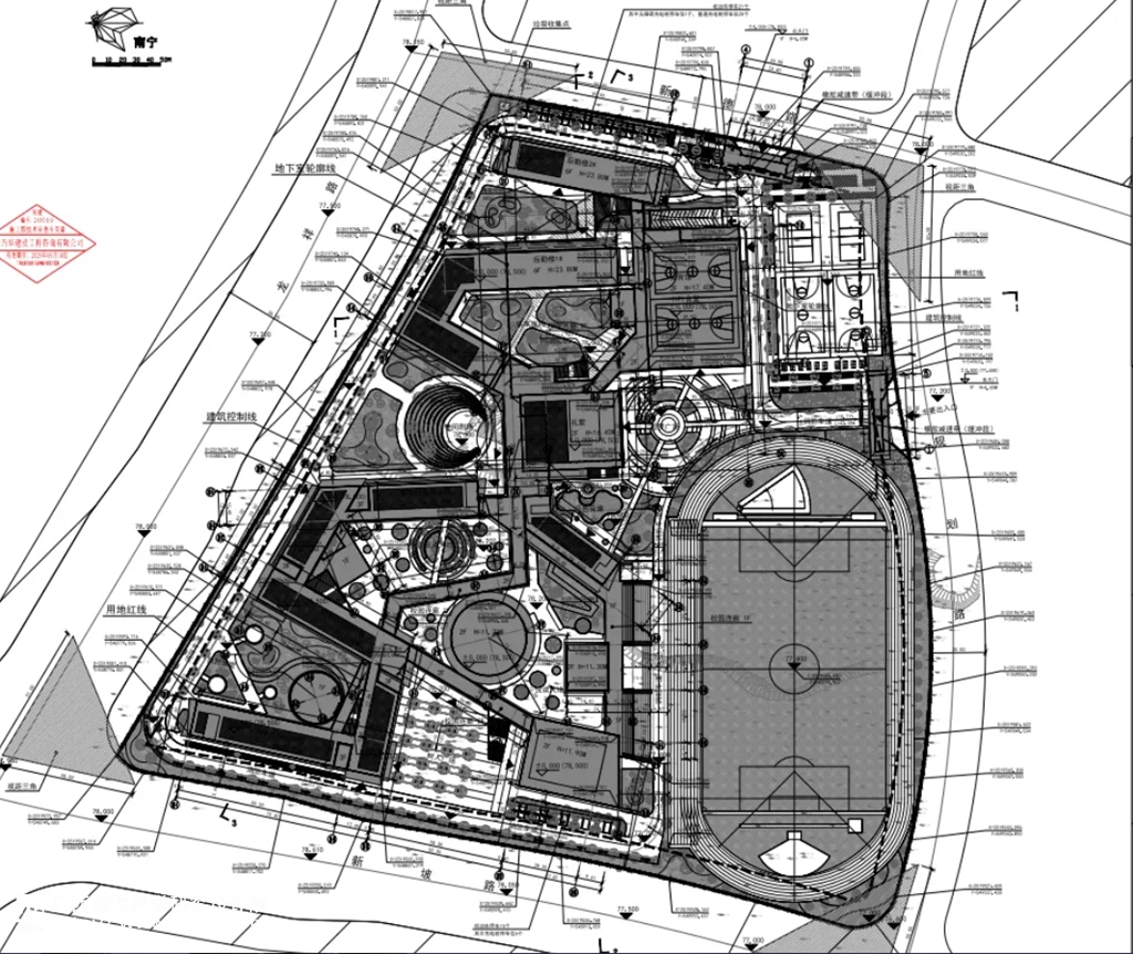 項目概況:該項目建設單位為南寧市邕寧區教育局,南寧市富申建設投資有限責任公司(代建單位);項目位于南寧市邕寧區,擬建設一所45個教學班級的初級中學,擬建總建筑面積為52575.26平方米,其中地上建筑面積47007.29平方米(教學行政綜合樓23969.11平方米,后勤樓1#944.80平方米,后勤樓2#4722.58平方米,體育館4938.14平方米,禮堂3695.24平方米,東大門112.59平方米,北大門124.83平方米),地下建筑面積5567.97平方米。項目最大跨度9.1米,基坑開挖最大深度7.85米。