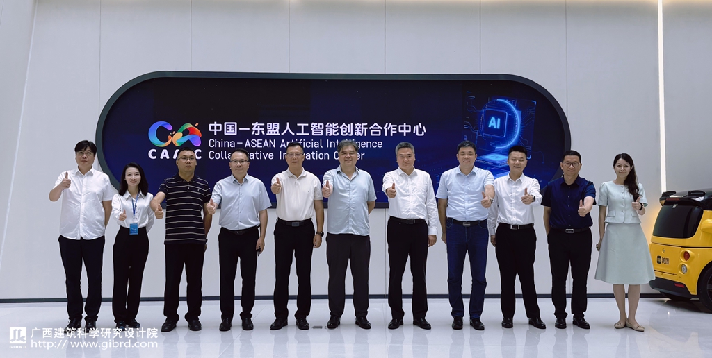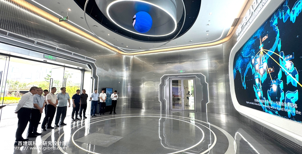 座談結束后,我院一行在中建科工廣西公司相關負責人的陪同下,實地參觀了中國 — 東盟人工智能創新合作中心。作為中國與東盟在人工智能領域交流合作的重要平臺,該中心匯聚了人工智能、大數據、物聯網等前沿技術資源,展示了智能建造、智慧城市等領域的創新應用成果。通過參觀,我院代表深入了解了該中心的建設背景、功能定位以及人工智能技術在相關場景的具體應用。