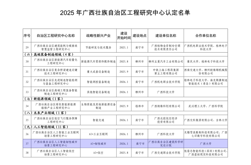 近日,由我院牽頭,聯(lián)合廣西大學(xué)共同申報的“廣西壯族自治區(qū)人工智能韌性城市場景工程研究中心”成功入選2025年廣西壯族自治區(qū)工程研究中心名單。這標志著我院在推動人工智能與韌性城市建設(shè)深度融合領(lǐng)域邁出關(guān)鍵步伐,將為我區(qū)城市安全韌性提升提供強有力的技術(shù)支撐與產(chǎn)業(yè)賦能。