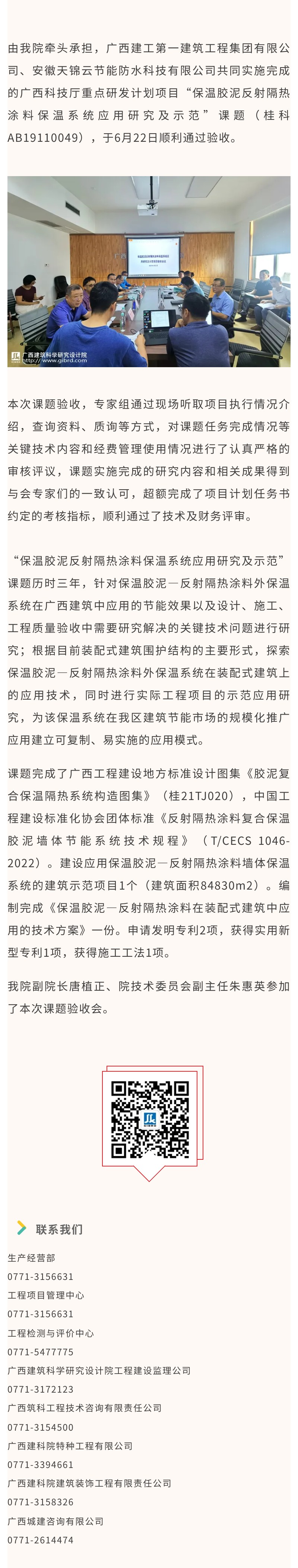 我院牽頭承擔的“保溫膠泥反射隔熱涂料保溫系統應用研究及示范”課題通過驗收
