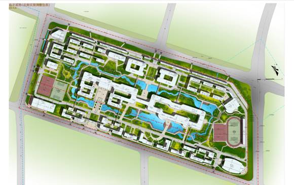 一期宿舍樓位于校區北側生活服務區,規劃建設10棟宿舍樓,建成后能容納11000人學生入住。建筑層數為11層、14層的組合,總建筑面積119297.28平方米,總投資約3.789億元。