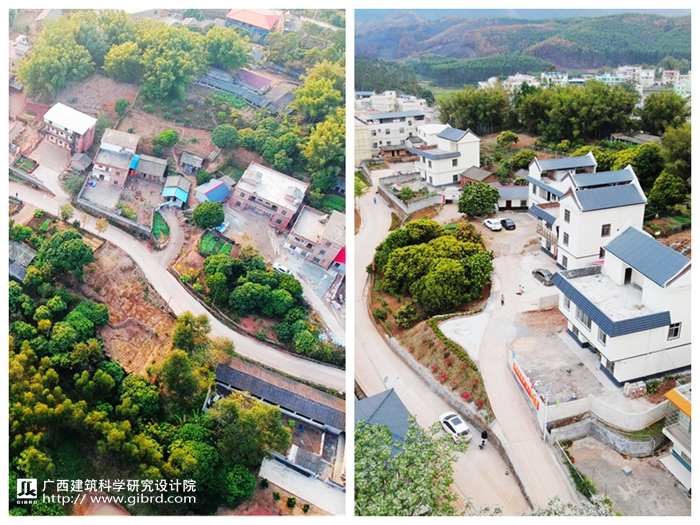 覃塘區(qū)示范點(diǎn)(寺門(mén)屯)改造前后航拍圖
