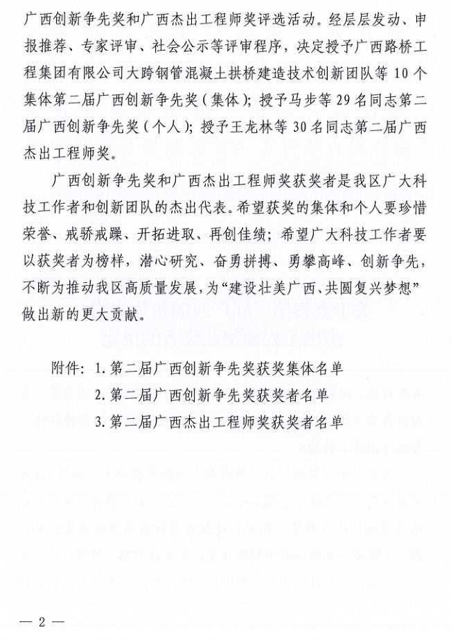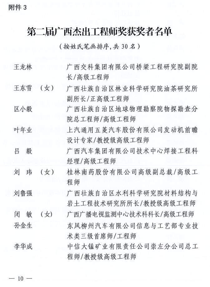 會保障廳、國資委聯合印發了《關于表彰第二屆廣西創新爭先獎、杰出工程師