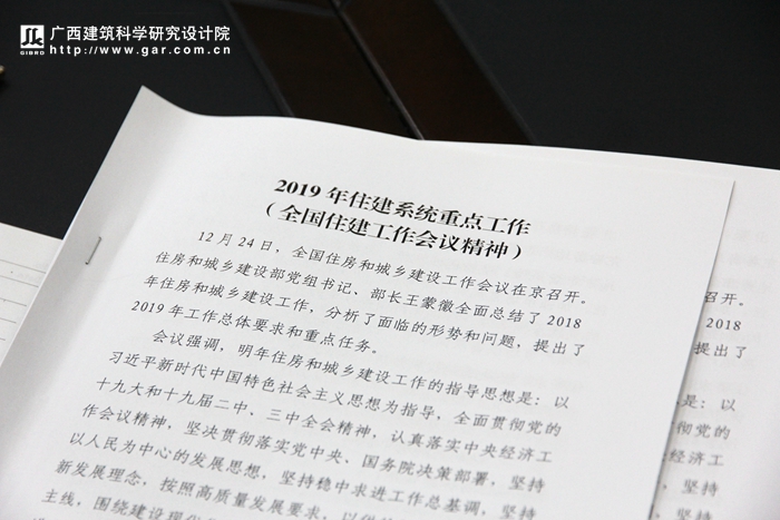 2018年12月24日,全國住房和城鄉(xiāng)建設(shè)工作會(huì)議在京召開。住房和城鄉(xiāng)建設(shè)部黨組書記、部長王蒙徽全面總結(jié)了2018年住房和城鄉(xiāng)建設(shè)工作,分析了面臨的形勢(shì)和問題,提出了2019年工作總體要求和重點(diǎn)任務(wù)。12月28日,我院班子成員集體學(xué)習(xí)了全國住建工作會(huì)議精神。