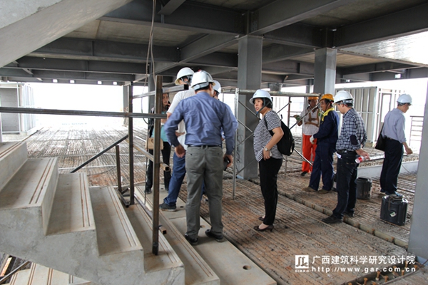 楊綠峰副廳長一行還考察了我院EPC牽頭建設(shè)的我區(qū)第一個裝配式示范項目:景典裝配式實驗樓,該樓采用裝配式鋼結(jié)構(gòu)、混凝土疊合樓板、鋼筋桁架樓層板、PC保溫隔熱一體化復(fù)合外掛墻板,該項目是廣西第一個裝配式低能耗的三星級綠色建筑。