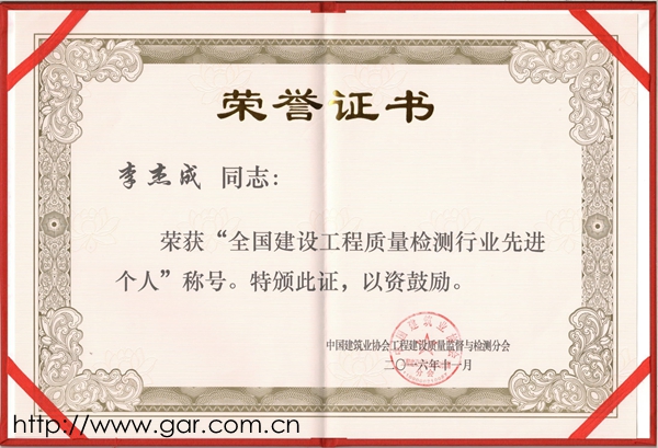會議還表彰了2016全國“建設工程質(zhì)量監(jiān)督系統(tǒng)先進單位和先進個人”、“建設工程質(zhì)量檢測行業(yè)先進單位和先進個人”,全國共有71家檢測機構(gòu)被評為“全國建設工程質(zhì)量檢測行業(yè)先進單位”,其中廣西有2個單位入選;全國共有202人被評為“全國建設工程質(zhì)量檢測行業(yè)先進個人”;其中廣西共有6人,我院李杰成副總工程師也被評為“全國建設工程質(zhì)量檢測行業(yè)先進個人”。協(xié)會對全國先進單位和全國先進進行了表彰并頒發(fā)了獎狀和證書。
