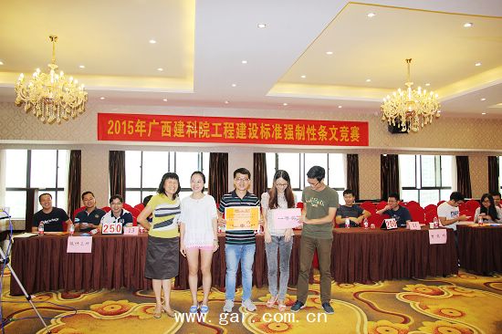 2015年7月10日,我院舉辦了工程建設標準強制性條文競賽,院里共有13支隊伍參加。本次活動得到院領導高度重視和大力支持,俸尚東書記到會并講話,他希望通過競賽這個平臺,進一步檢驗設計人員對工程建設標準強制性條文的熟悉程度,加深大家對工程建設標準強制性條文的理解,領悟其重要意義。同時也為設計人員提供一個團結互助、相互交流、同臺競技的機會。 本次競賽分為必答題、搶答題、風險題、互動題等四個環節。在競賽中,參賽隊員表現優異,團隊意識強,充分展現各自的風采。整個競賽活動緊張激烈,活動持續近三個小時。 本次競賽活動的成功舉辦,不僅達到預期的目的,同時對我院設計產品質量更上一層樓發揮積極作用。