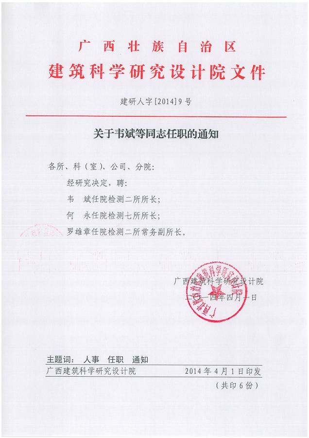 廣西建筑科學研究設計院 二〇一四年四月一日