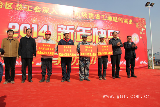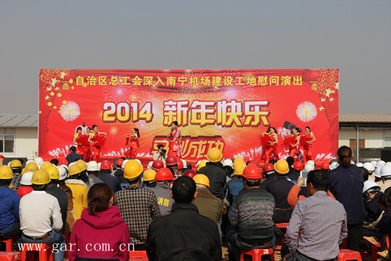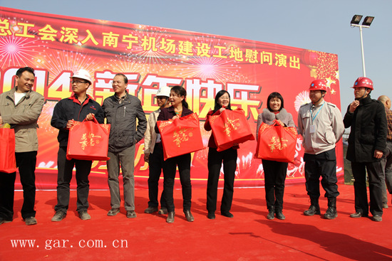 2014年1月22日廣西區(qū)總工會(huì)在南寧機(jī)場(chǎng)擴(kuò)建工地舉行慰問(wèn)農(nóng)民工活動(dòng),此項(xiàng)活動(dòng)得到眾多單位的支持,我院也是其中之一。參加慰問(wèn)的領(lǐng)導(dǎo)有自治區(qū)人大副主任、區(qū)總工會(huì)主席王若飛、自治區(qū)人大環(huán)資委副主任委員宋繼東、自治區(qū)人防辦副主任陳維等。區(qū)總工會(huì)主席王若飛王對(duì)為機(jī)場(chǎng)擴(kuò)建工程付出辛勤勞動(dòng)的農(nóng)民工表達(dá)了感激之情,祝廣大農(nóng)民工過(guò)個(gè)快樂(lè)、祥和的春節(jié)。我院工會(huì)副主席楊萍代表我院參加了慰問(wèn)活動(dòng),并向農(nóng)民工代表獻(xiàn)上我院的慰問(wèn)品。