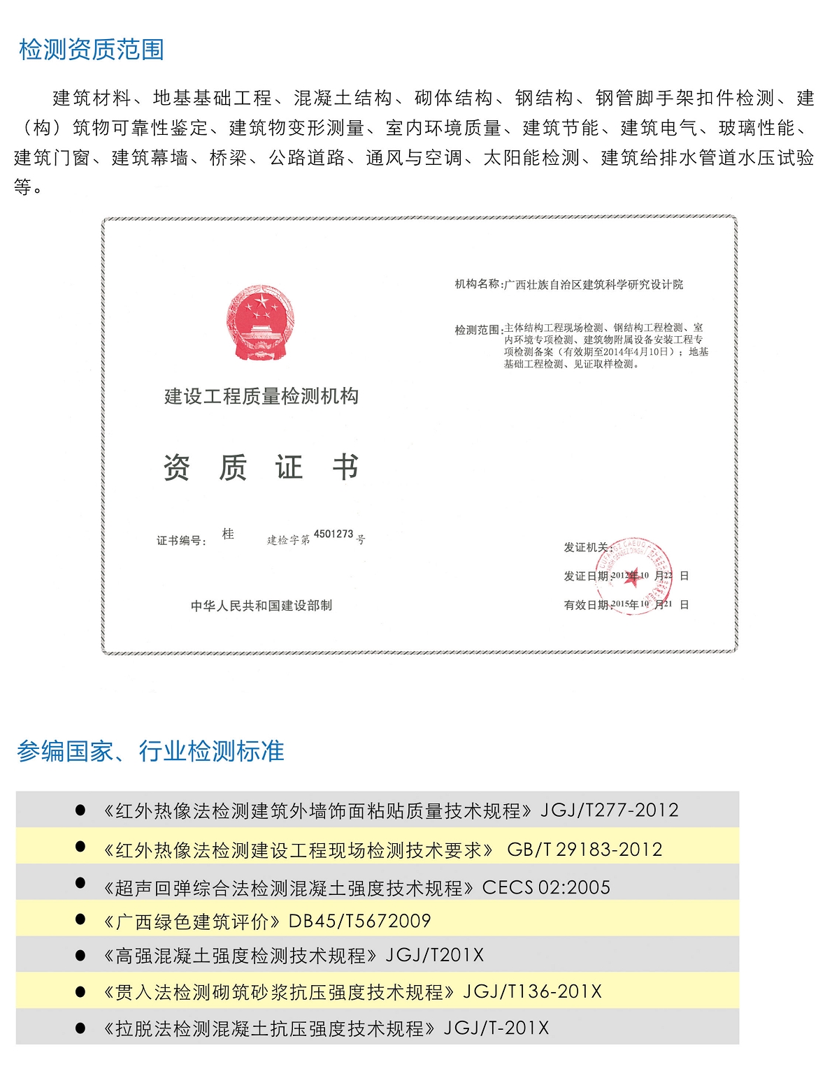 檢測資質范圍及參編國家、行業檢測標準