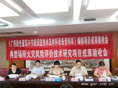 受廣西科學技術廳委托,廣西住房和城鄉建設廳于2013年7月5日在廣西建設大廈主持召開由我院承擔的“廣西可再生能源建筑應用條件研究”科研項目驗收鑒定會和“《廣西綠色建筑與節能適宜技術及材料設備資料庫》編制”、“典型場所火災風險評價技術研究”項目驗收會。