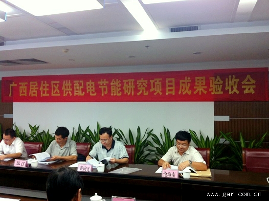 受廣西科學(xué)技術(shù)廳委托,廣西住房和城鄉(xiāng)建設(shè)廳于2012年9月7日上午在南寧市主持召開由廣西建筑科學(xué)研究設(shè)計(jì)院和廣西電網(wǎng)公司聯(lián)合承擔(dān)的“廣西居住區(qū)供配電節(jié)能研究”科研項(xiàng)目成果驗(yàn)收會(huì)。出席本次會(huì)議的有區(qū)住建廳領(lǐng)導(dǎo)、專家組成員以及該項(xiàng)目研究組成員。