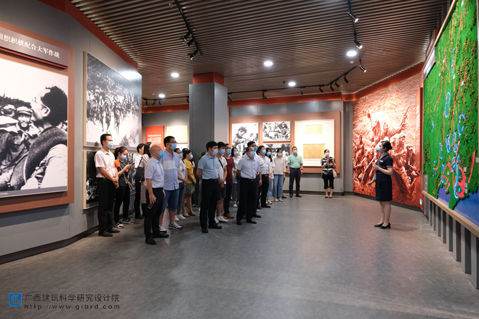 參觀活動正式開始之前,俸尚東書記作了講話,說明了本次活動的目的是共同回顧和感受偉大的共產黨在廣西的光榮歷史和廣西脫貧攻堅戰取得的偉大成就,同時感受我院廣西黨史陳列館功能提升改造項目一線工作的職工日夜加班,通宵達旦,連續作戰,最終不負自治區黨委政府及相關部門寄予的厚望,順利圓滿完成該項目,確保如期順利開館慶祝建黨百年華誕。俸書記在講話中還結合當前的黨史學習教育和我院的發展實際,提出了三點要求:一是要提高站位,持續推進黨史學習教育;二是凝心聚力,將黨史學習教育成果轉化為推動我院體制改革的工作實效和實現高質量發展的強大動力;三是團結一心,開啟建科院新的征程。