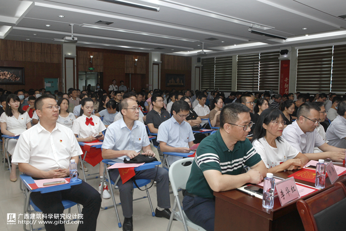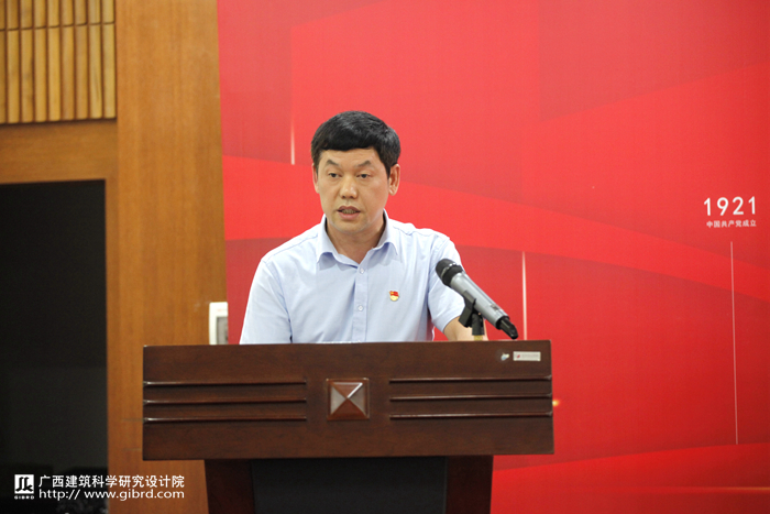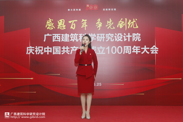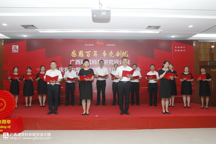 會議由全體與會人員起立奏唱國歌、合唱《沒有共產黨就沒有新中國》拉開序幕,大家用嘹亮的歌聲表達對偉大的黨和偉大的祖國的熱愛與敬仰。隨后,院黨委書記俸尚東發表講話,俸書記和大家分享了中國共產黨的百年奮斗史和我院黨委去年以來取得的工作成效,并對未來的工作提出了三個“進一步”要求:一是進一步提振精神狀態,鼓足發展的干勁,樹立爭先的意識,以追求完美、追求極致的工作要求自我加壓、奮勇爭先;二是進一步錘煉務實作風,踐行“雷厲風行,真抓實干”的工作作風,發揚敢打硬仗、敢啃硬骨頭的精神;三是進一步強化責任擔當,以更高的自覺、更嚴的要求,狠抓工作落實,推動事業發展。同時,他還希望廣大黨員干部職工發揮好黨員的先鋒模范作用,團結黨內外一切進步力量,擰成一股繩,形成強大合力,不斷銳意進取,助推廣西建科院步入質量更高、廣度更深的發展階段。