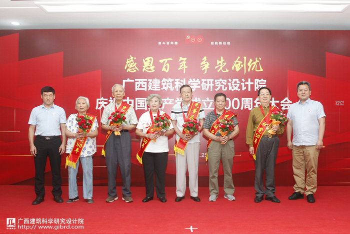 院黨委書記俸尚東、院長梁浩文為“光榮在黨50年”紀念章獲得者頒獎