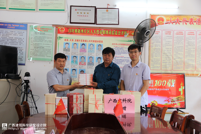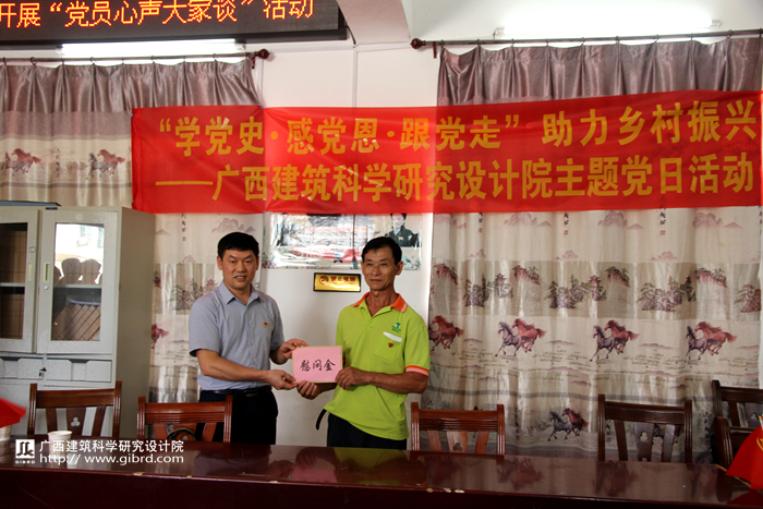 當(dāng)天上午,雖然經(jīng)過(guò)了三個(gè)小時(shí)的路途顛簸,但是當(dāng)車輛駛進(jìn)趙坐村時(shí),大家看著山清水秀的風(fēng)景,呼吸著清新舒爽的空氣,整個(gè)人都感到心曠神怡,似乎所有的疲憊都已被那美麗的鄉(xiāng)村風(fēng)景消滅了。到達(dá)目的地后,村干部們熱情的招呼大家喝水歇息。隨后召開(kāi)了座談會(huì),聽(tīng)取了我院選派的趙坐村駐村第一書(shū)記張罡睿同志的匯報(bào),俸尚東書(shū)記向大家講述了開(kāi)展此次活動(dòng)的目的和意義,并對(duì)駐村的同志提出了三點(diǎn)要求,一是虛心向基層的干部群眾學(xué)習(xí),爭(zhēng)做優(yōu)秀的共產(chǎn)黨員,帶領(lǐng)廣大群眾努力實(shí)現(xiàn)鄉(xiāng)村振興,展現(xiàn)建科人“來(lái)之能戰(zhàn)、戰(zhàn)之能勝”的能力水平和良好的精神風(fēng)貌;二是時(shí)刻牢記黨的宗旨,注重黨建引領(lǐng)作用,發(fā)揮黨組織的戰(zhàn)斗堡壘作用,和村干部們共同打造一支專門(mén)為群眾辦實(shí)事辦好事的有本領(lǐng)高水平的干部隊(duì)伍;三是加強(qiáng)溝通交流,不斷提升自身的工作能力和水平,安心工作和生活。俸尚東書(shū)記在講話中,還對(duì)白圩鎮(zhèn)黨委政府和趙坐村委指導(dǎo)和培養(yǎng)我院選派的駐村第一書(shū)記表示感謝。會(huì)上,俸尚東書(shū)記代表我院向趙坐村困難黨員代表送上了慰問(wèn)金,向趙坐村村委捐贈(zèng)了價(jià)值4200多元的黨史學(xué)習(xí)教育書(shū)籍。座談會(huì)結(jié)束后,大家參觀了趙坐村代表產(chǎn)業(yè)——上林縣振林(粵桂)扶貧莊園。