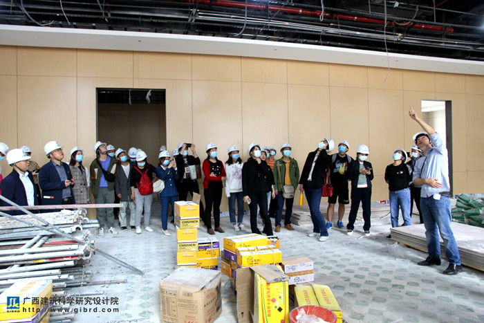 活動中,廣西黨史陳列館功能提升改造項目總負責人、檢測六所所長段志浩,就該項目建設的重難點、技術突破、施工作業等方面進行詳細的介紹,從段所長的介紹中了解到,該項目建設最難最關鍵部分就是地下消防工程建設,該部分采用了不需要獨立工期的混凝土結構自防水工藝,通過我院全體技術人員群策群力、集思廣益、通力合作,在地下室墊層澆筑以后,僅用了4天時間,完成了整個地下室的施工至頂板面的澆筑,創造了廣西奇跡。在段所長的介紹和引導下,黨員們還參觀了黨史陳列館室內外施工現場。