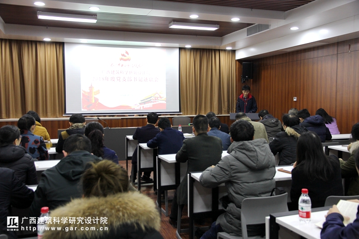 2019年1月11日下午,我院2018年度黨支部書記述職會在三號辦公樓二樓會議室召開,院黨委書記俸尚東、黨委副書記、紀委書記曹天仕、各黨支部書記及黨員參加了會議,會議由曹天仕主持。