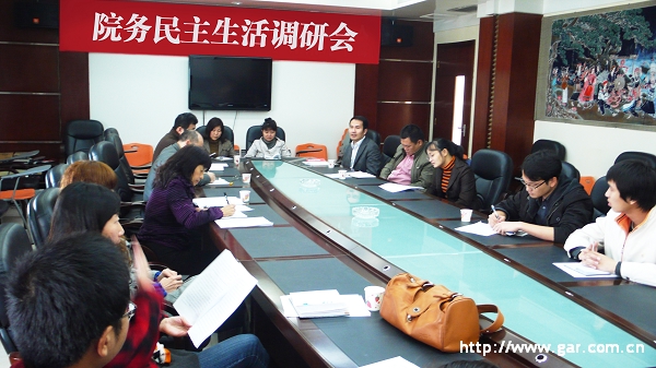 2010年12月22日,我院召集院各科、所代表約20人,在院六樓會(huì)議室召開針對我院日常事務(wù),群眾是否滿意及主動(dòng)提意見民主生活會(huì),這是黨組織工作的要求,也是和諧社會(huì)院務(wù)工作管理的重要部份。參會(huì)代表積極發(fā)言、各舒已見,群策群力給院里面提見意,談想法。本次召集、主持會(huì)議的有院工會(huì)副主席楊萍、院辦副主任樊振北等。
