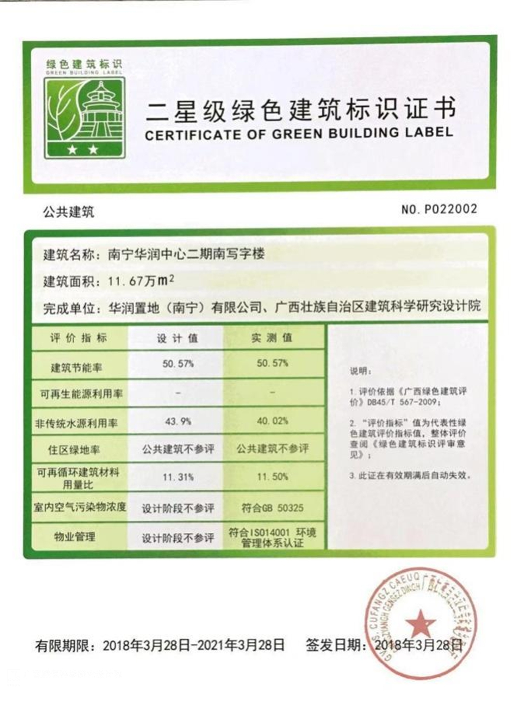 1、 貴港吾悅廣場B地塊S-1#樓 二星級綠色建筑標識